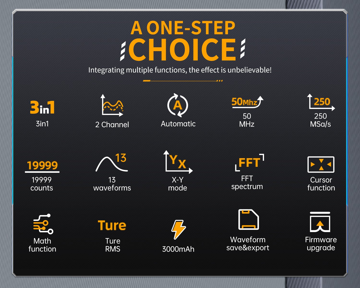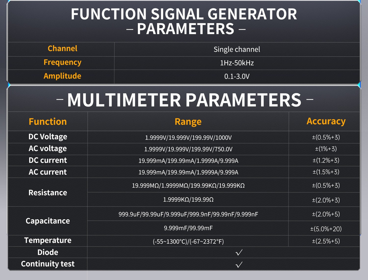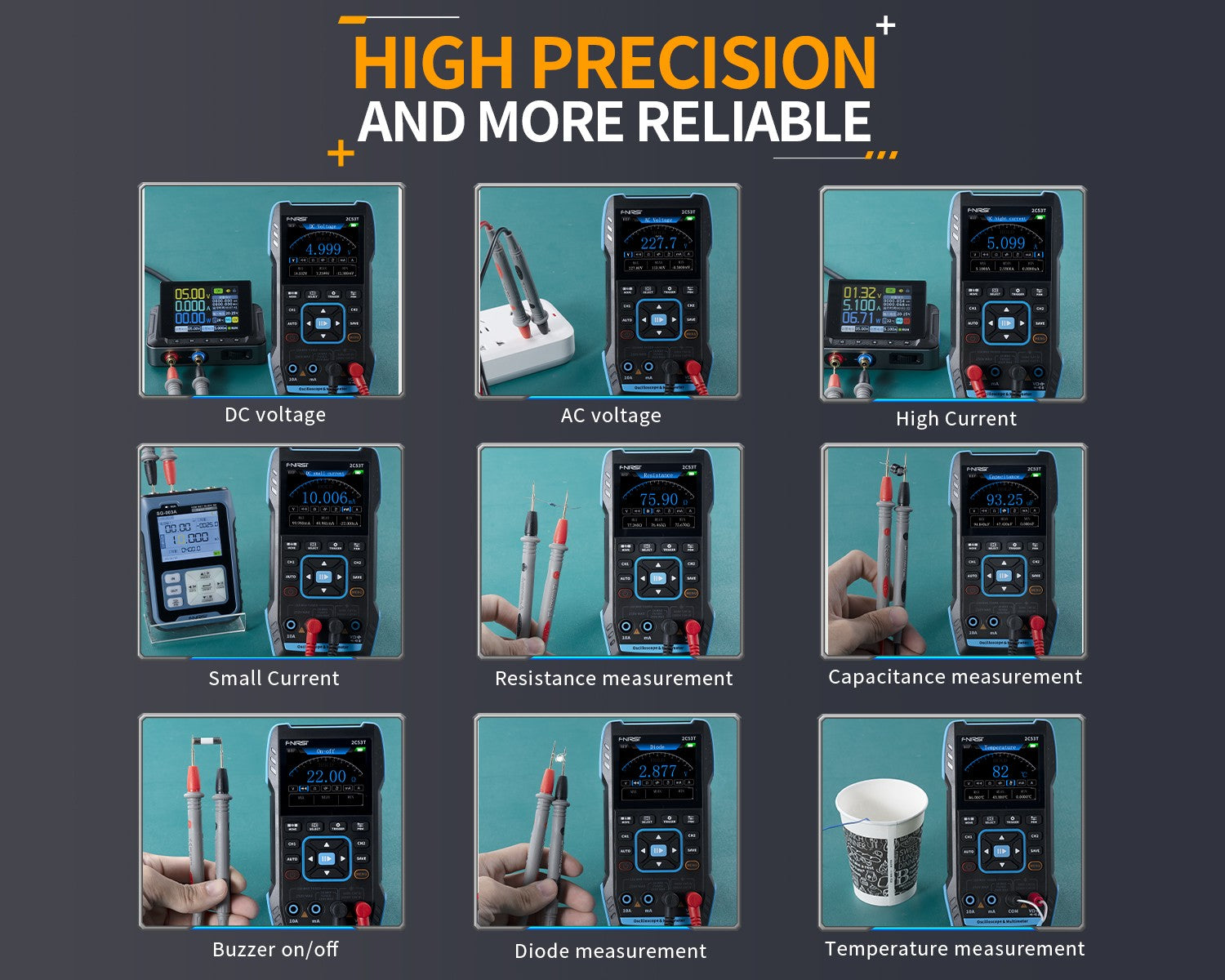 The multimeter function offers 4.5 digits with 19999 counts true RMS, supporting AC/DC voltage and current measurements, as well as capacitance, resistance, diode, and continuity measurements, making it an ideal multifunctional instrument for professionals, factories, schools, enthusiasts, or home use.