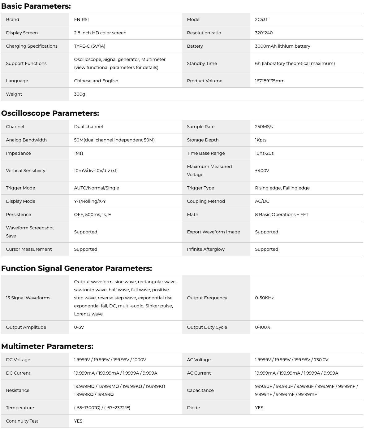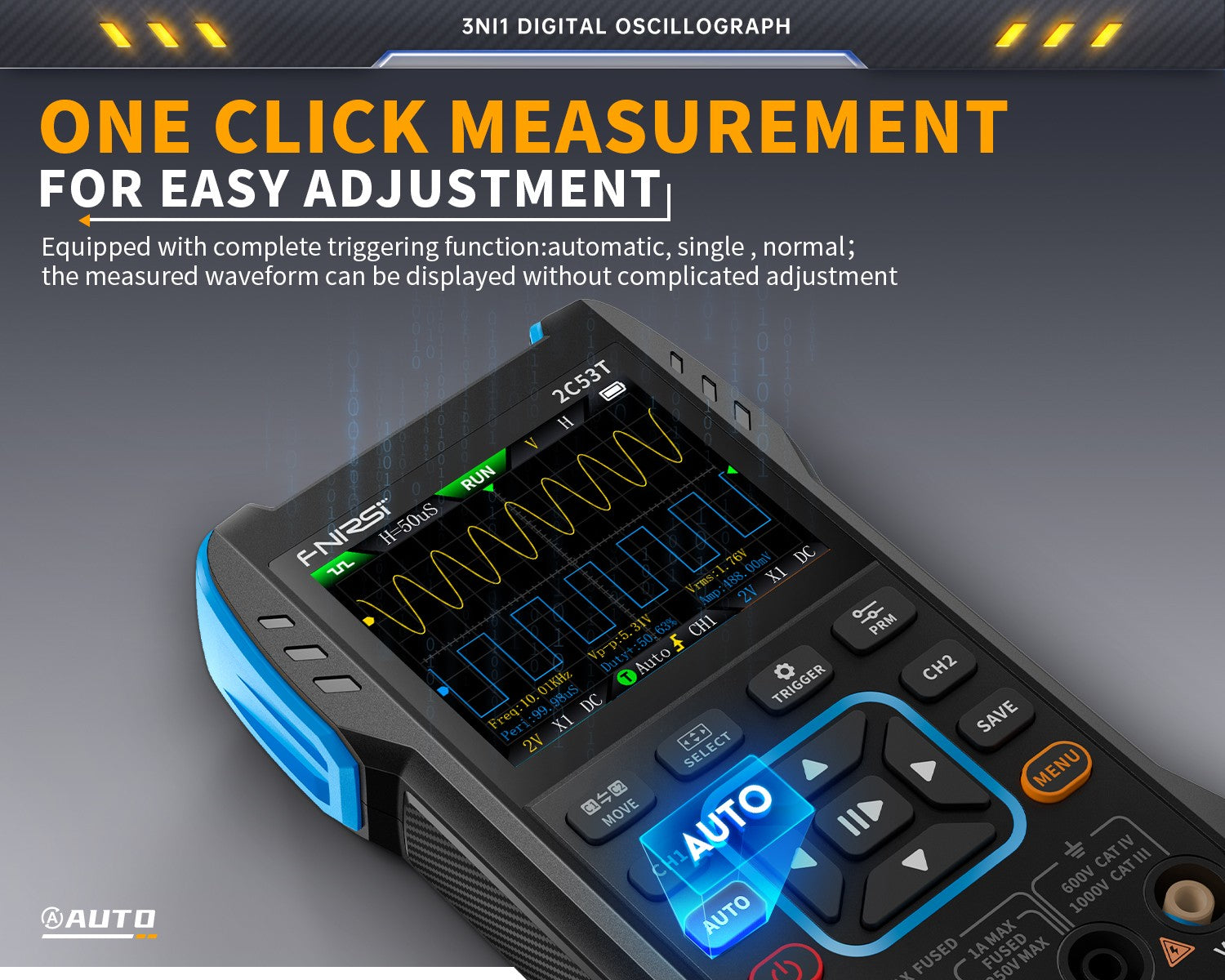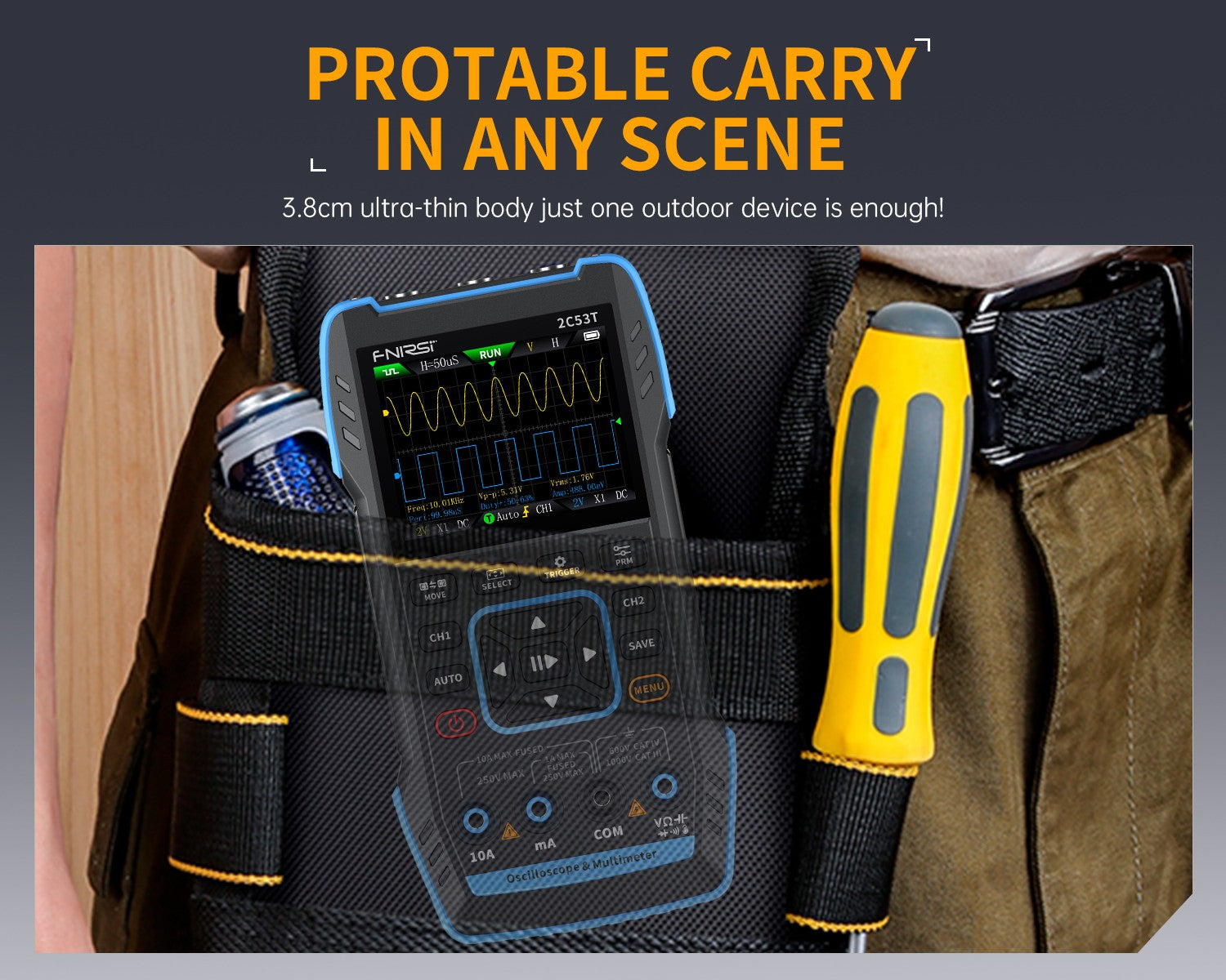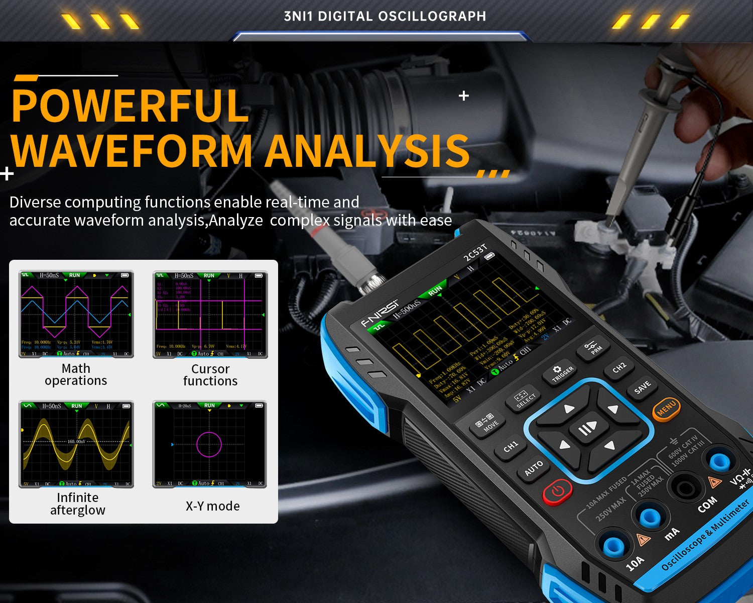 2C53T 50MHz 250MS/s Handheld 3in1 Oscilloscope Multimeter Signal Generator FNIRSI®