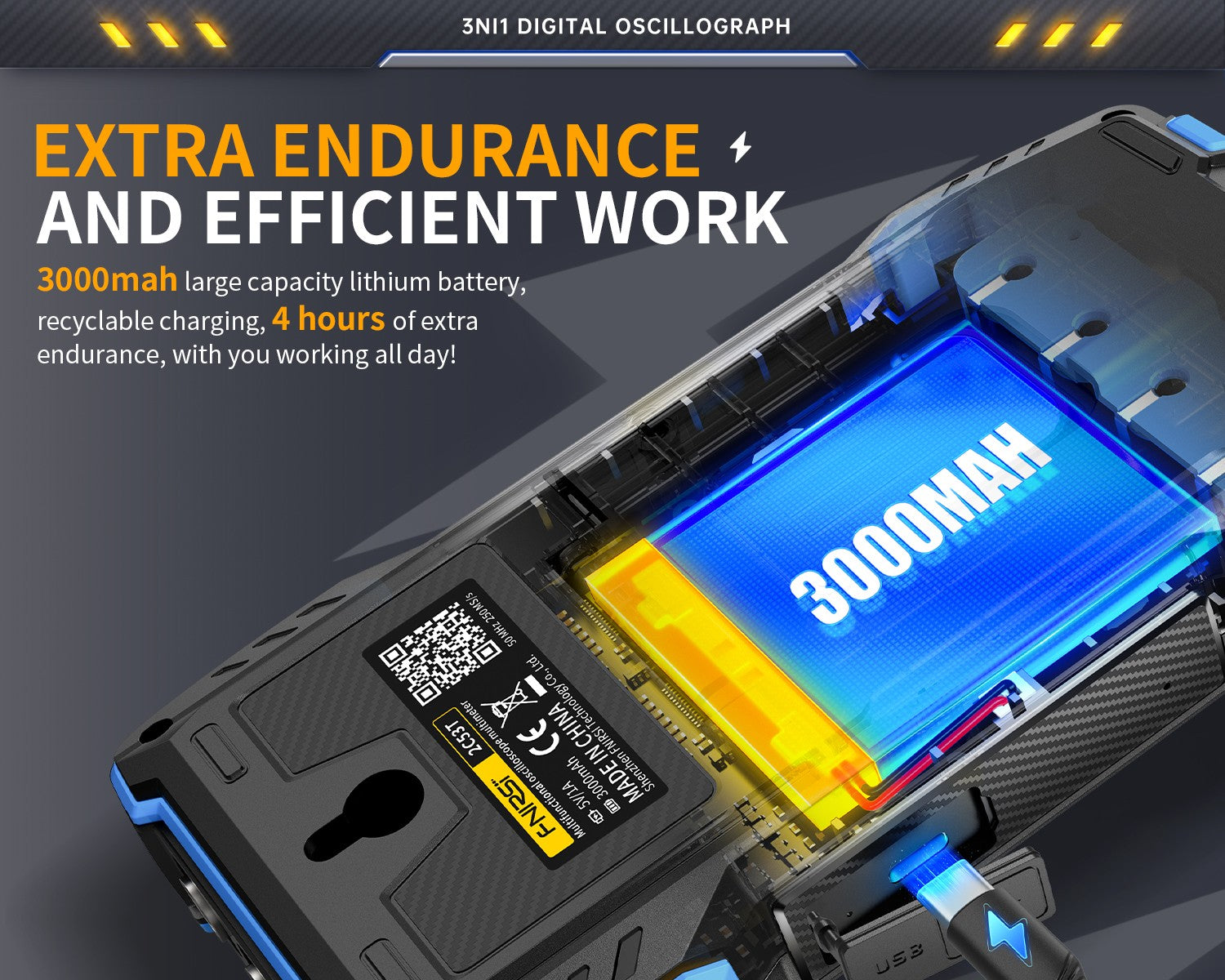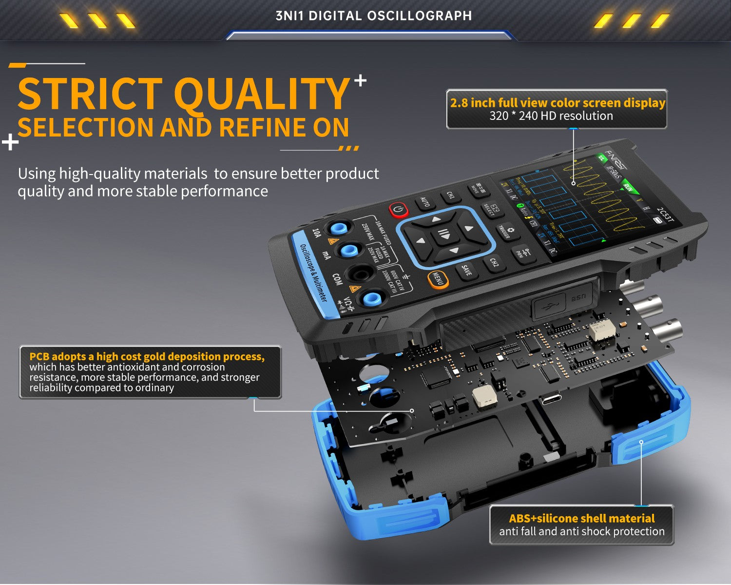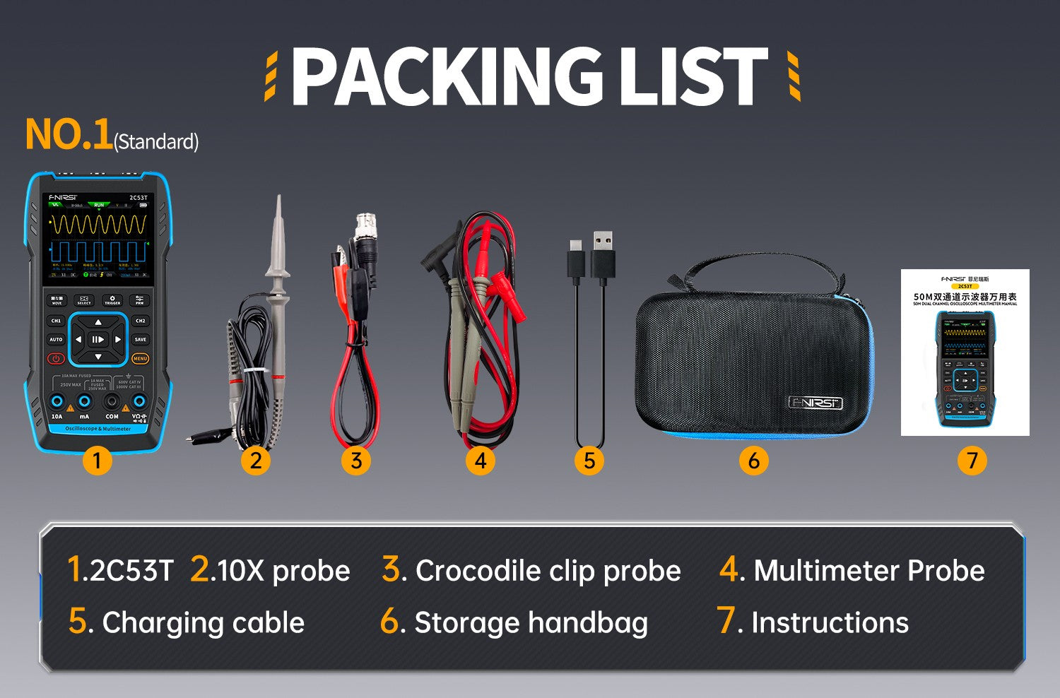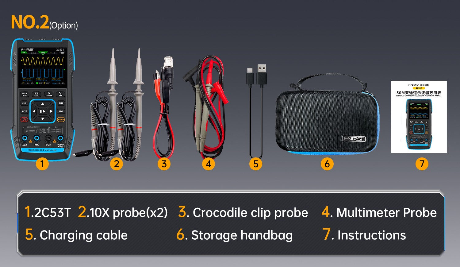 2C53T 50MHz 250MS/s Handheld 3in1 Oscilloscope Multimeter Signal Generator FNIRSI®