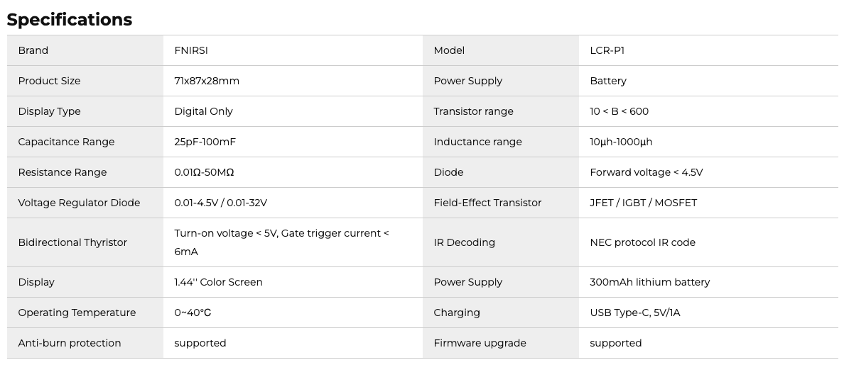 ✦ Versatile Tester: FNIRSI LCR-P1 measures transistors, capacitors, resistors, inductors, diodes, MOSFETs, and batteries.